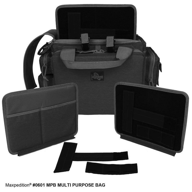 The MPB Multi-Purpose Bag is a fully-padded, straightforward, professional multi-purpose briefcase with 30L of space and 22 independent carrying compartments. Inside you will find removable stiff panels for separating your gear and attaching Maxpedition Hook-&-Loop pockets and accessories. Whether you are conducting business in the luxury of a downtown high-rise or camping in the rugged outdoors, you will find the clean-cut lines of the MPB and its ultra-durable nylon construction to fit all your carrying needs. Suitable for use with your laptop computer, documents, digital accessories, shooting / hunting / range gear, and even the most delicate photographic or filming equipment.
